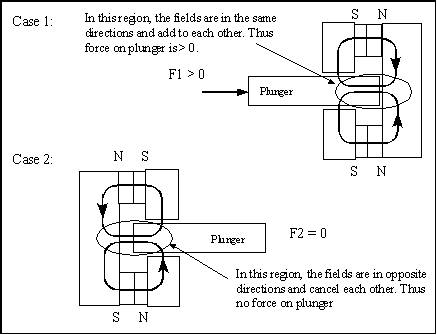 I am postulating, contrary to popular belief, that in case 2 the magnetic fields do not “link” with each other but form their normal loops and cancel each other in the plunger in the region of the air gap as shown. I hope to obtain a gauss meter to take measurements and prove or disprove this theory.